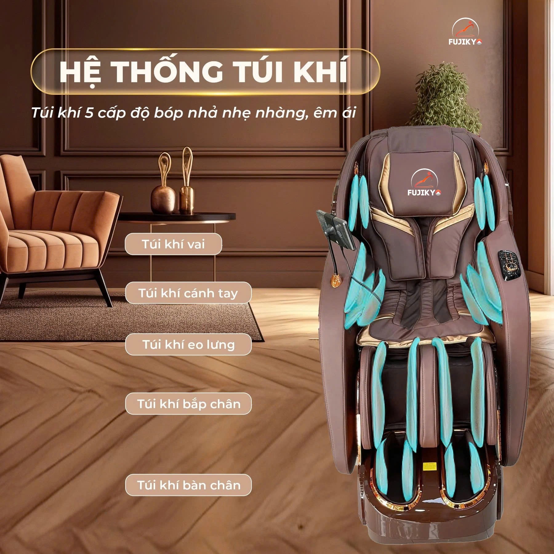 Tùy chỉnh các vị trí massage: các vị trí massage như toàn thân, vùng vai, tay, eo – hông, chân và bàn chân có thể dễ dàng tùy chỉnh lên – xuống theo ý thích của người dùng. Đồng thời, mọi người có thể điều chỉnh cường độ và mức độ của túi khí, lực massage, lực con lăn massage với 5 chế độ khác nhau